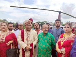 কোটালীপাড়ায় হেলিকপ্টারে চড়ে বিয়ে করতে এলেন বর
